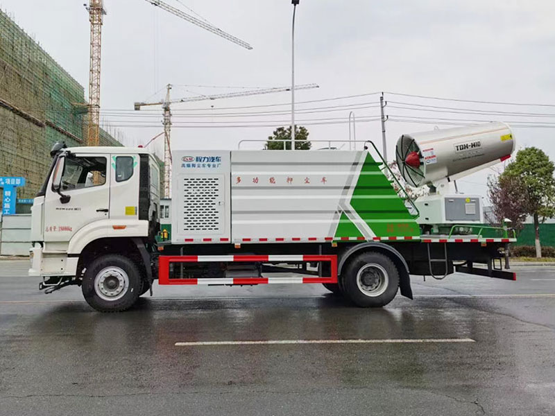 國六重汽豪沃單橋多功能抑塵車上裝配置:12方容積水罐,采用國標Q235B厚度5mm碳鋼制作,罐體內環氧玻璃鱗片防腐處理,質保兩年,主管道使用不銹鋼氣動球閥,駕駛室可自動控制,出水量大,可實現前沖,后灑,側噴,高炮,后尾部工作大平臺,平臺可加裝50米,60米,80米,100米風筒式霧炮,可作為單獨灑水車使用,并具備多種抑塵功能。