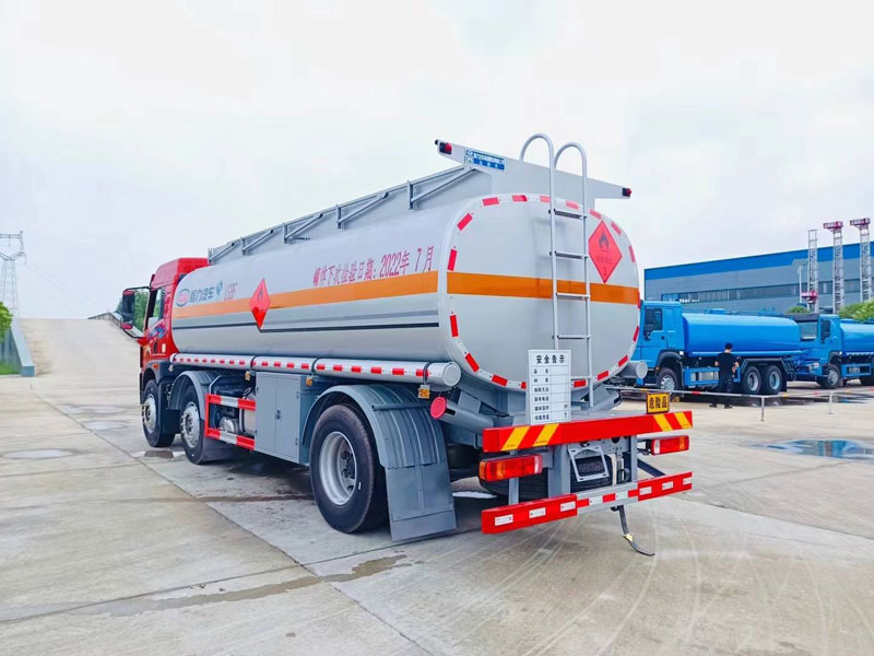 錫柴6缸220馬力發動機CA6DLD-22E6,陜齒8檔變速箱,軸距5250mm,后橋11噸,275/80R22.5 18PR層級輪胎,新法規,龍V2.0半高頂半浮駕駛室,危險品運輸車專用。罐體可選碳鋼或鋁合金材質,運輸介質汽柴油。