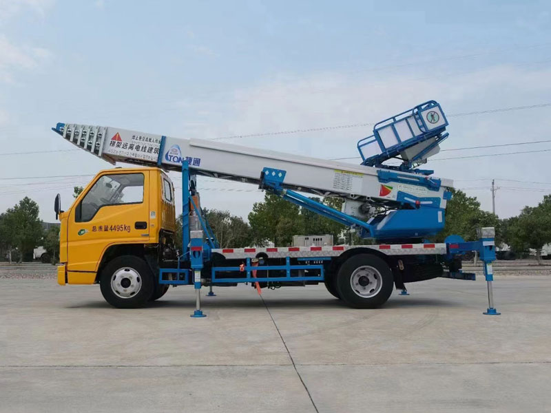 江鈴32米單排云梯車,不超重,上牌無憂。全新的電控技術,帶液晶顯示屏,實時監控運行狀態,故障報警顯示,讓您用車更省心。
