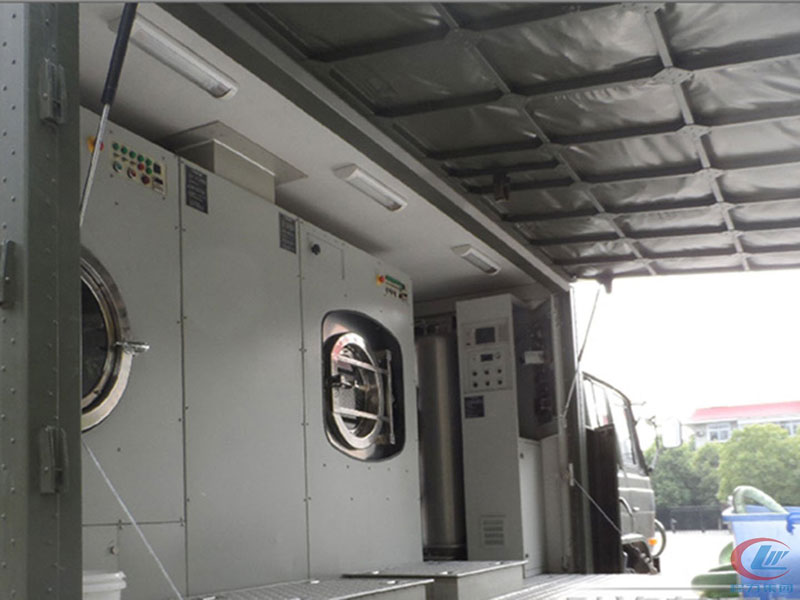 消防救援被服洗滌車,集洗衣、烘干、掛燙等多功能于一體。該型裝備操作使用方便,機(jī)動(dòng)性能好,自動(dòng)化程度高,滿足一小時(shí)能洗滌50kg(50套)干重被服;40~55分鐘烘干50kg(50套)干重的被服需求。該型被服洗滌車由方艙艙體、洗衣系統(tǒng)、干衣系統(tǒng)、熱源系統(tǒng)、給排水系統(tǒng)、車載發(fā)電系統(tǒng)、電氣控制系統(tǒng)等構(gòu)成。