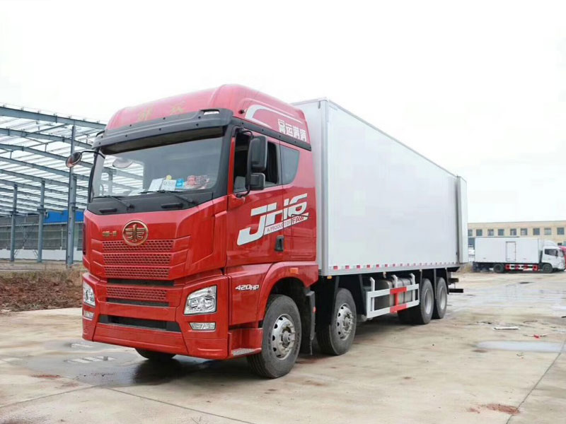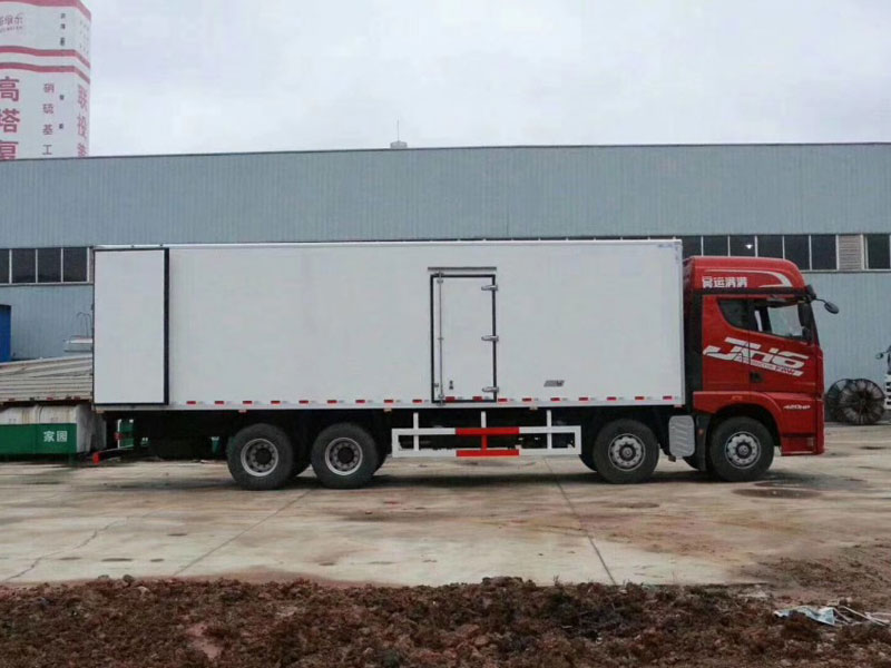 解放JH6前四后八程力9米6冷藏車生產工藝:廂體采用聚酯濕法制板工藝和玻璃纖維加強全木廂體框架結構,全封閉聚氨酯板塊粘接法; 廂板材質:內外壁板選用國內優質的2.2mm玻璃鋼;中間保溫材料選用進口聚氨酯;廂體厚度80mm,門厚度80mm;  配件:廂體周邊2.5mm鋁合金包邊,不銹鋼包角,不銹鋼門鎖,防碰膠皮4塊,不銹鋼門框, 不銹鋼合頁,箱內節能照明燈;  廂體厚度可選100mm、120mm,內外壁板可選裝玻璃鋼、彩鋼板、不銹鋼、鋁合金。