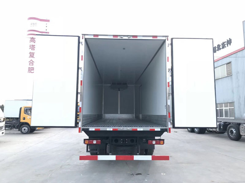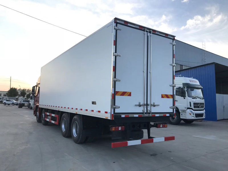 陜汽德龍X3000前四后八(氣囊)9米6冷藏車:廂體采用全塑全封閉復(fù)合材料板塊組合結(jié)構(gòu),內(nèi)外蒙皮為玻璃鋼板,中間夾層為聚氨酯發(fā)泡隔熱材 料,四側(cè)用高強(qiáng)度膠將玻璃鋼板與聚氨酯泡沫材料粘合在一起,形成一種封閉性板塊,并在拼裝成廂體時(shí)用高強(qiáng)度膠粘結(jié)在一起,并用內(nèi)埋高強(qiáng)度螺釘進(jìn)行緊固。