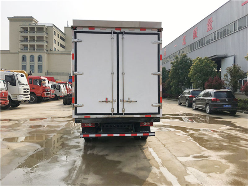 廂體采用內(nèi)?外玻璃鋼,中間8CM保溫板,后開(kāi)雙?門(mén),廂體?右側(cè)靠前單開(kāi)?門(mén),前部?排水孔,門(mén)條邊?采用橡膠封密?條,鋁合金型材包邊,不銹鋼?包角,不銹鋼?門(mén)鎖,不銹鋼門(mén)框?合頁(yè),廂體內(nèi)?節(jié)能LED照明燈。底部鋁花紋防滑板。